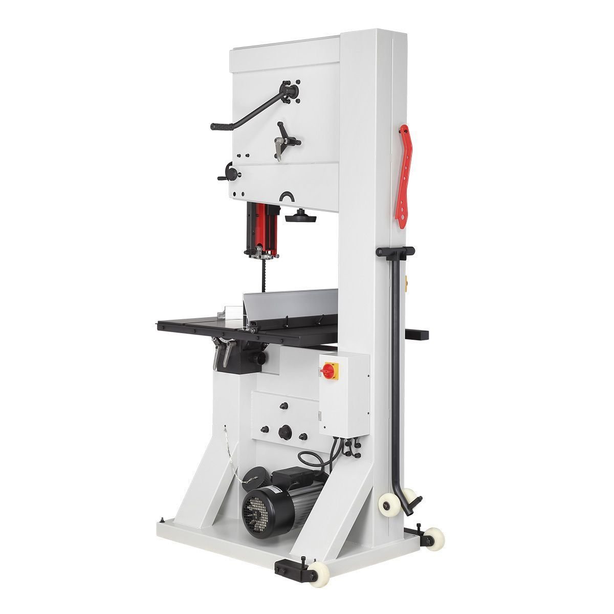 На станке используются пильные полотна длиной 4 590 мм и шириной от 19 до 38 мм, что позволяет осуществлять как прямолинейный, так и фигурный распил. Ослабление натяжения полотна осуществляется специальным рычагом в одно движение. Шкивы выполнены из чугуна, диаметр - 610 мм.