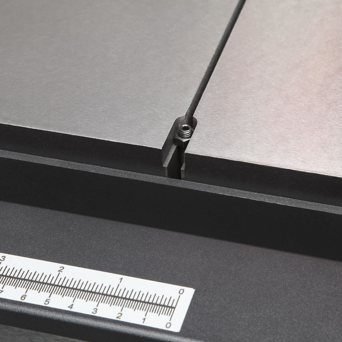 Рабочий стол из литого чугуна размером 610×700 мм и стальное расширение 200×700 мм создают просторную и виброустойчивую поверхность для работы с крупными деталями. Угол наклона стола плавно регулируется от 0° до +45°.