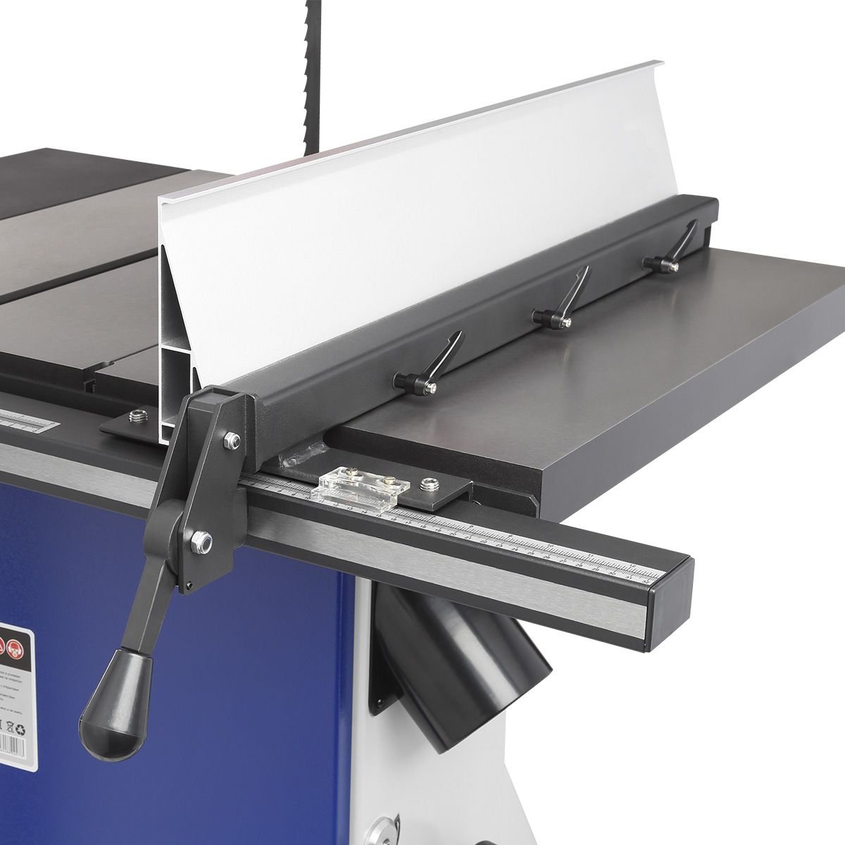 Для точного позиционирования заготовок станок комплектуется литым алюминиевым параллельным упором, который перемещается по передней направляющей и устанавливается как справа, так и слева от пильного полотна. Также он может устанавливаться как вертикально, так и горизонтально, в зависимости от высоты заготовки.