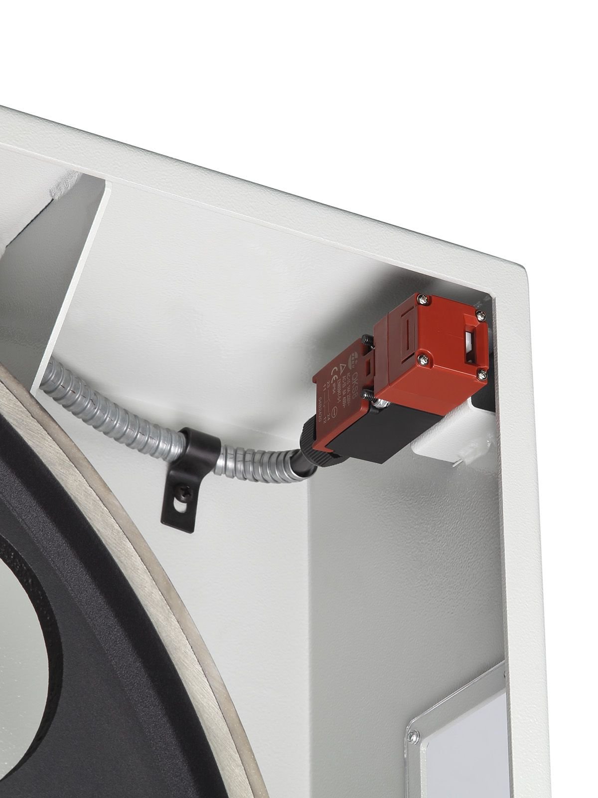 Сердцем станка является мощный асинхронный двигатель на 4 000 Вт, рассчитанный на длительную работу в режиме S1. Питание осуществляется через электромагнитный контактор, это подключение является эффективным и максимально безопасным. Также на станке установлены аварийная кнопка остановки двигателя и система блокировки с концевыми выключателями, которые предотвращают запуск при открытых защитных панелях.