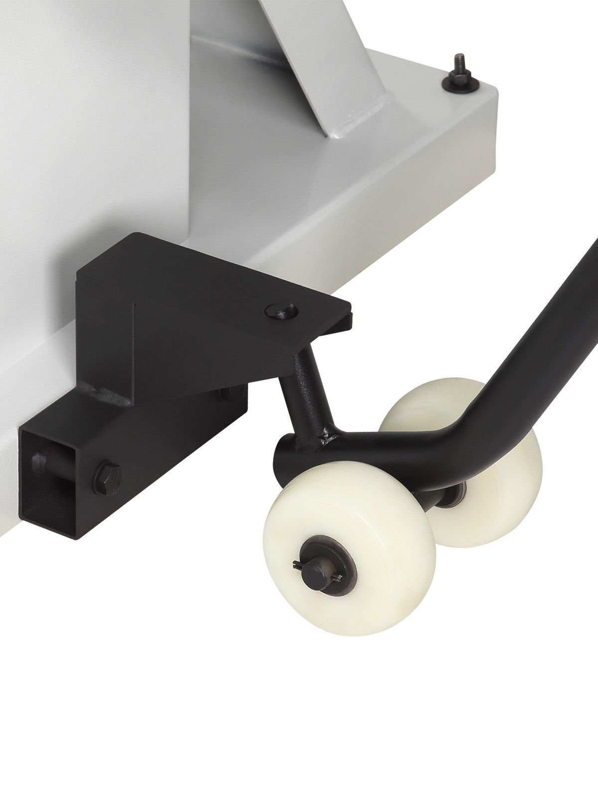 Перемещение станка весом 443 кг облегчает роликовый механизм подъема, входящий в комплект поставки.