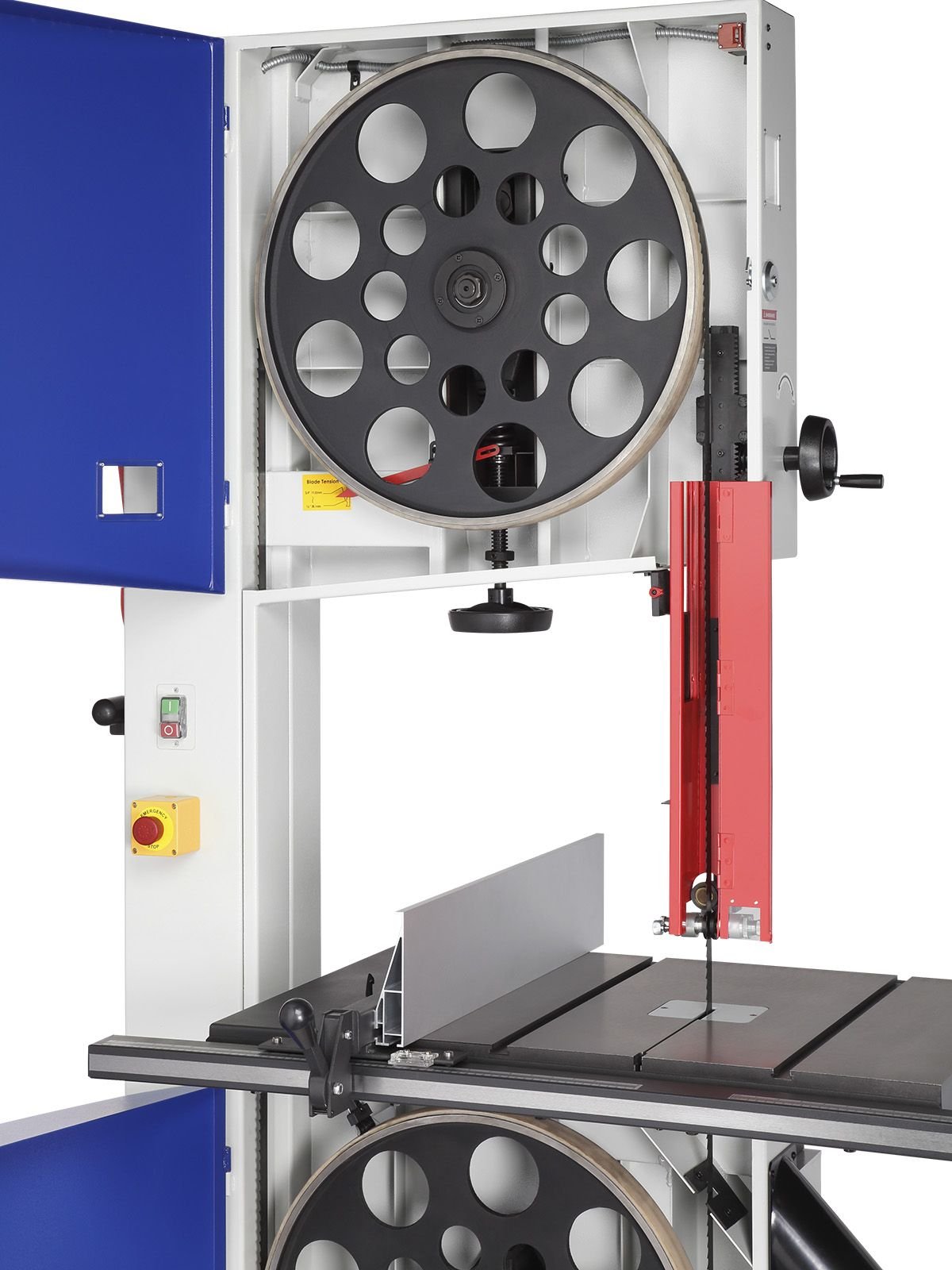 На станке используются пильные полотна длиной 5 020 мм и шириной от 19 до 50 мм, что позволяет осуществлять как прямолинейный, так и фигурный распил. Ослабление натяжения полотна осуществляется специальным рычагом в одно движение. Шкивы выполнены из чугуна, диаметр - 710 мм.