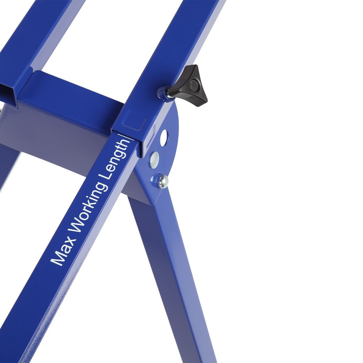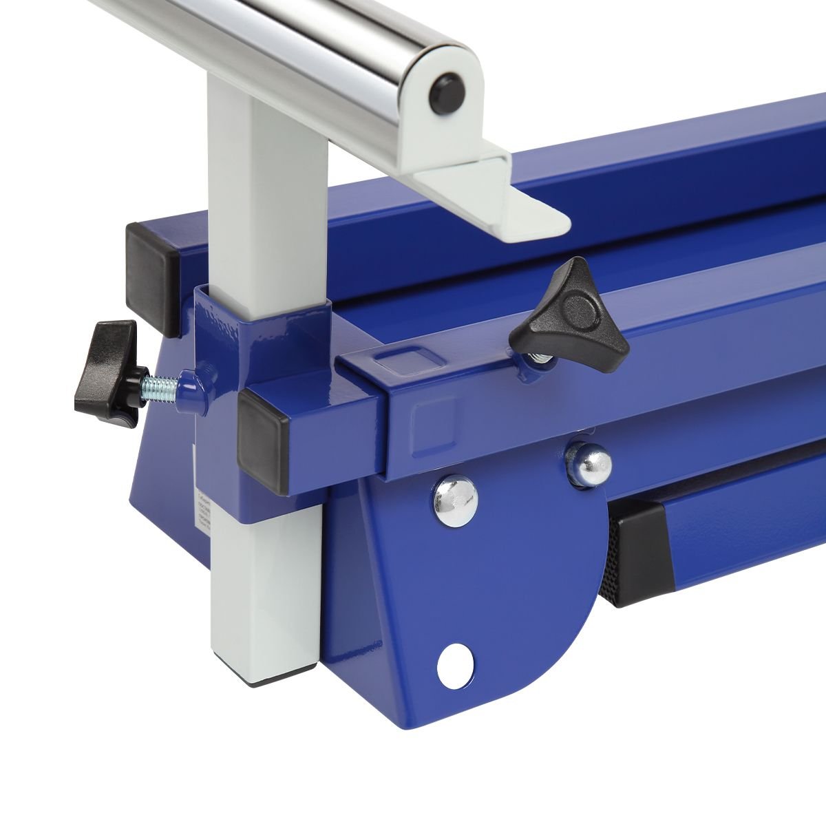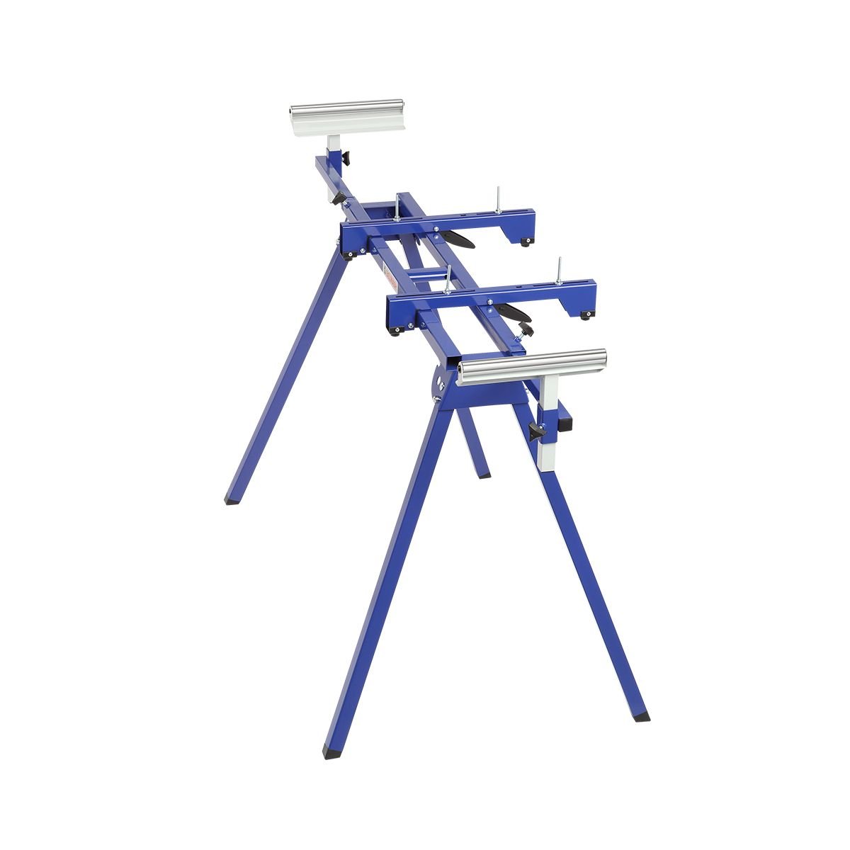 Подставка оснащена регулируемыми по высоте и длине упорами, которые обеспечивают надежную поддержку длинных заготовок и позволяют выполнять повторные операции с одинаковой точностью. Монтаж упоров осуществляется при помощи ручек фиксации.