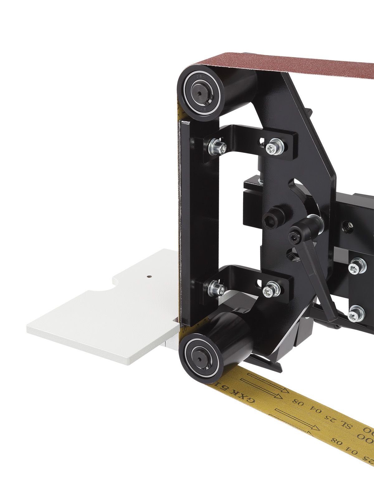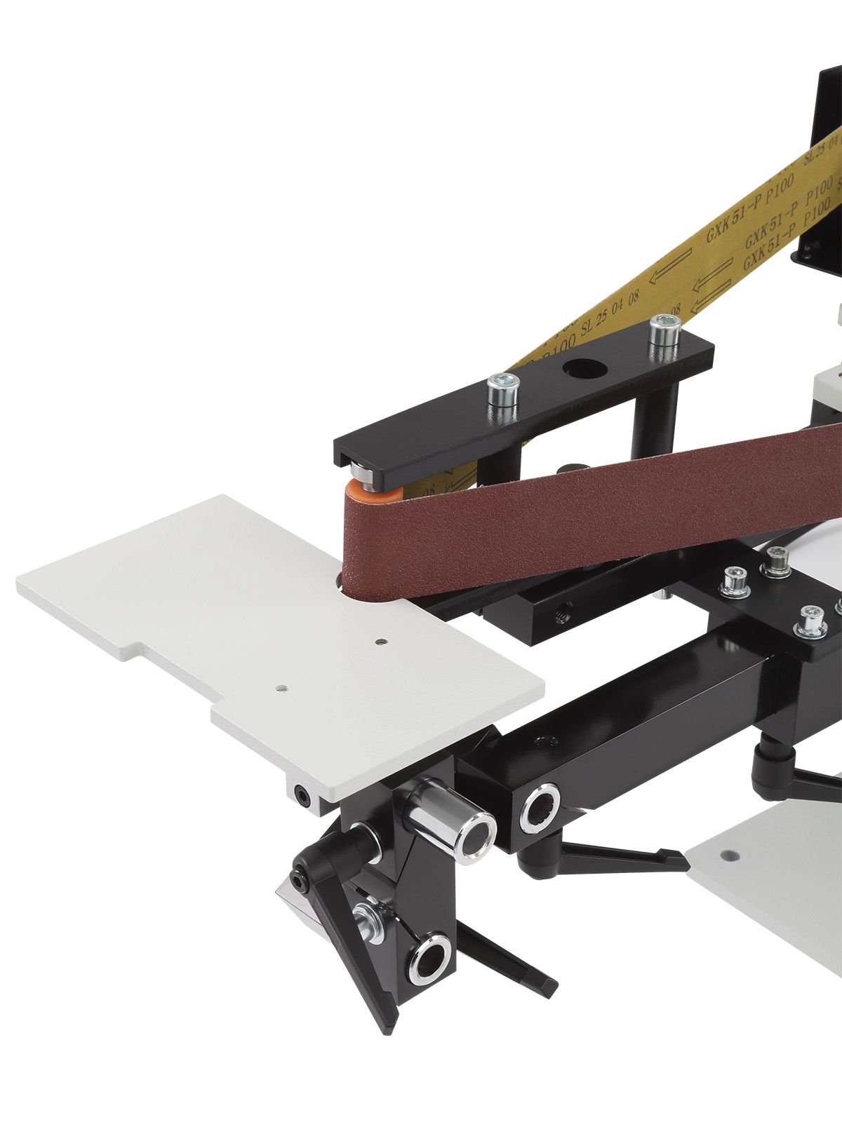 Станок рассчитан на использование лент шириной 50 мм. В комплект входят три ленты длиной 1829 мм с разной зернистостью: 100, 180 и 240 грит. Конструкция поддерживает установку лент длиной от 1630 до 2248 мм.