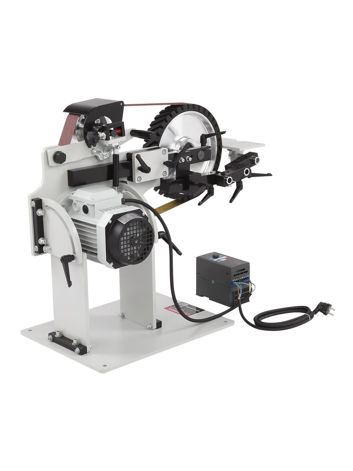 Модель имеет регулятор скорости движения шлифовальной ленты в диапазоне 0-28 м/с, который находится на блоке управления. Также есть возможность включить реверсивное движение ленты.